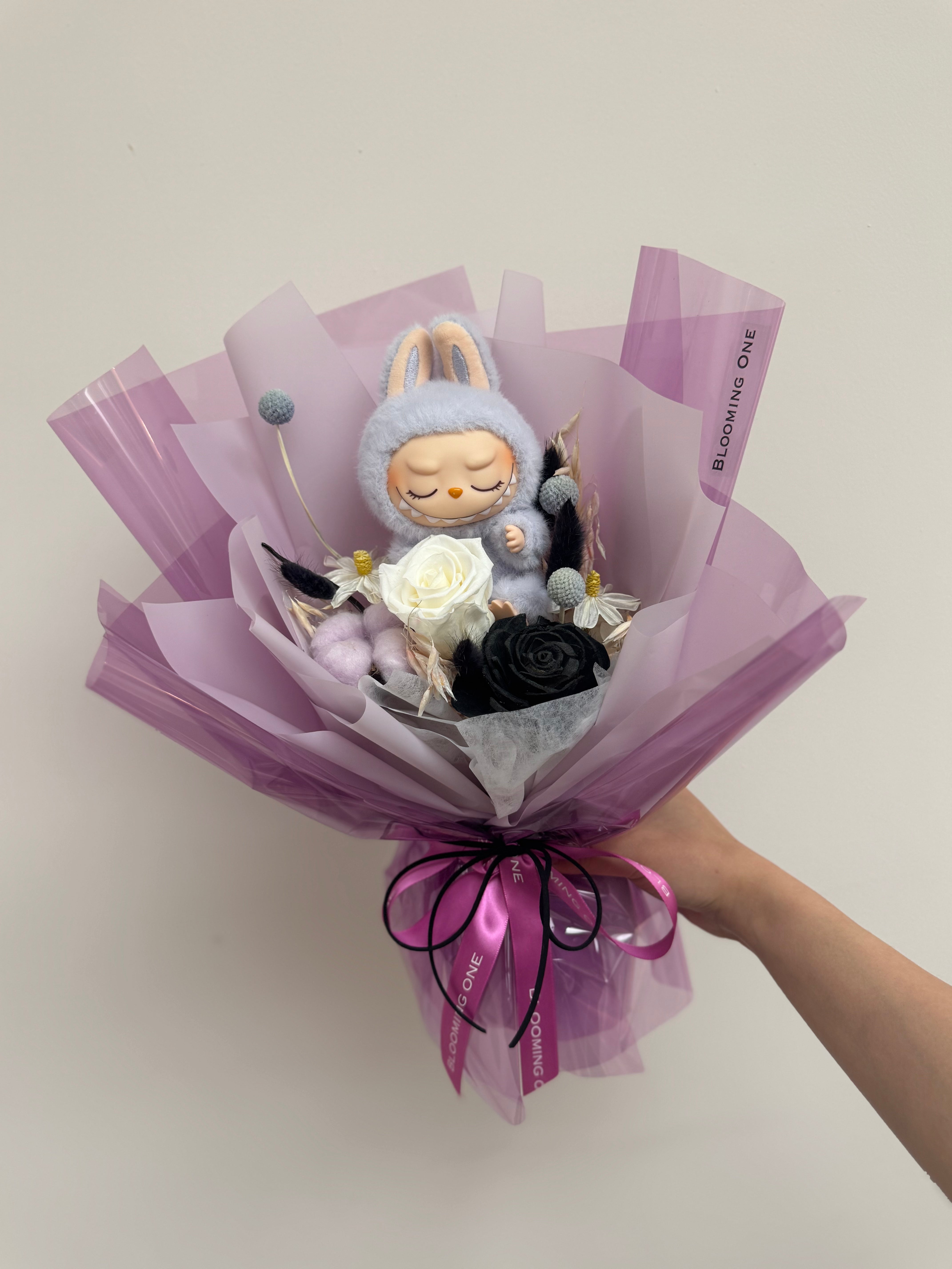 Labubu Preserved Roses Lavender Dream Bunny Bouquet - Labubu坐坐系列美滋滋永生花花束