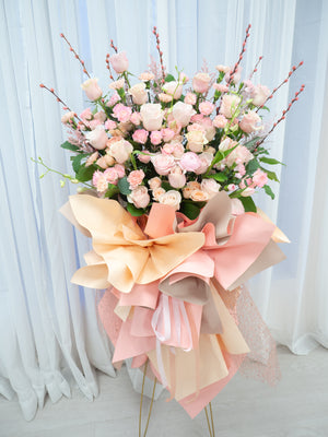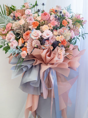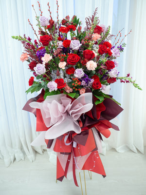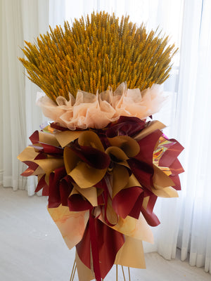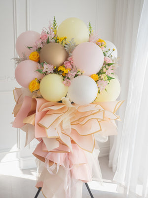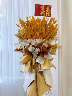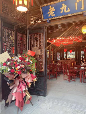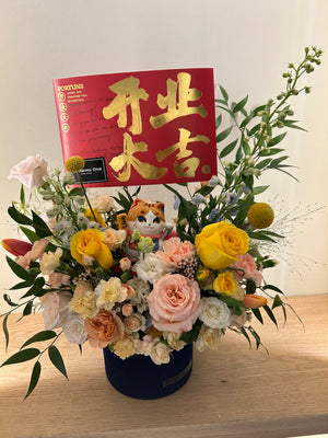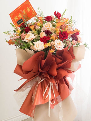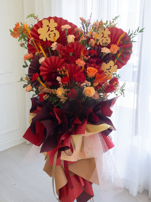 We also offer custom ribbons featuring your well wishes or branding, and we can even add balloons or traditional fortune cats to bring extra luck and prosperity to the occasion.