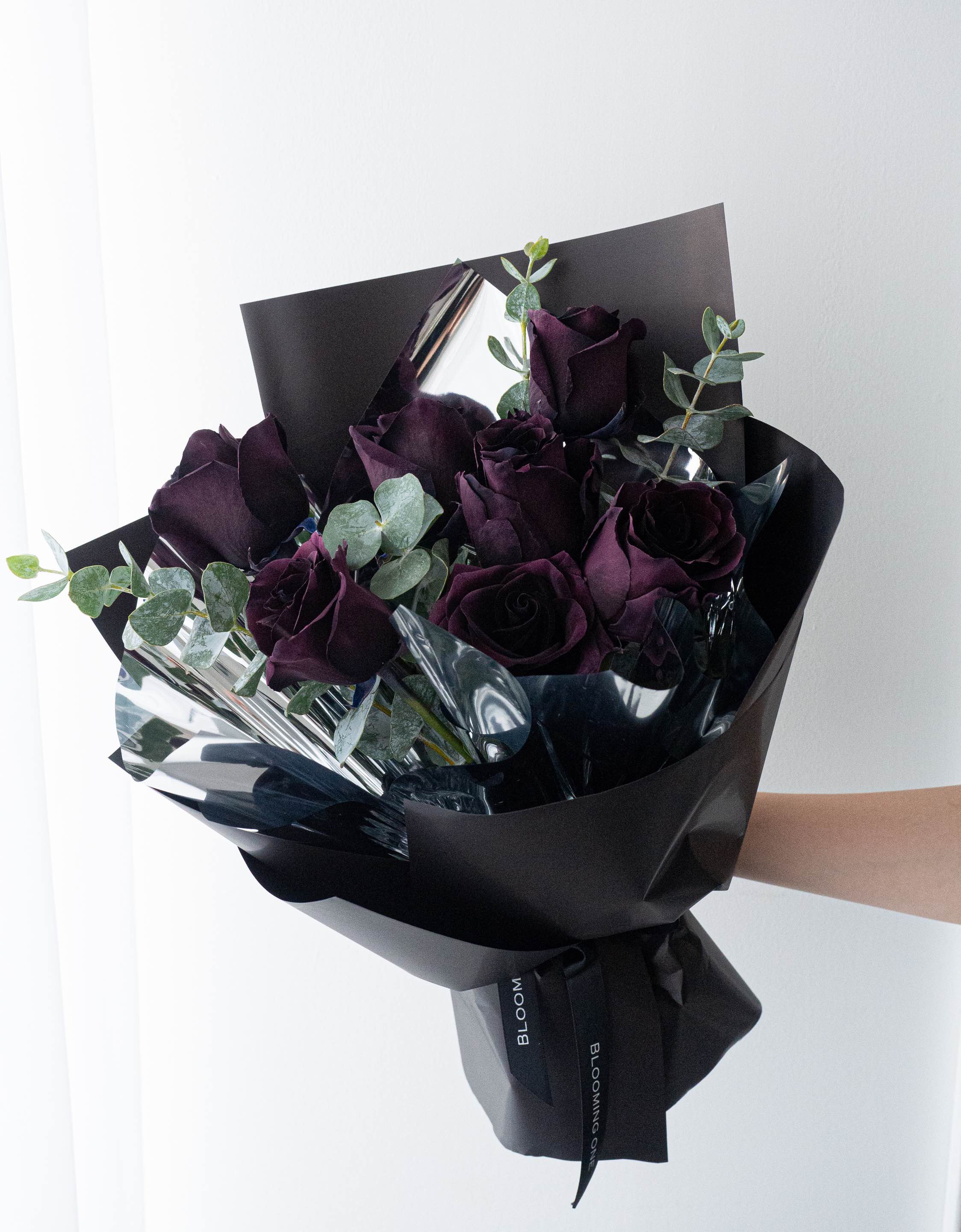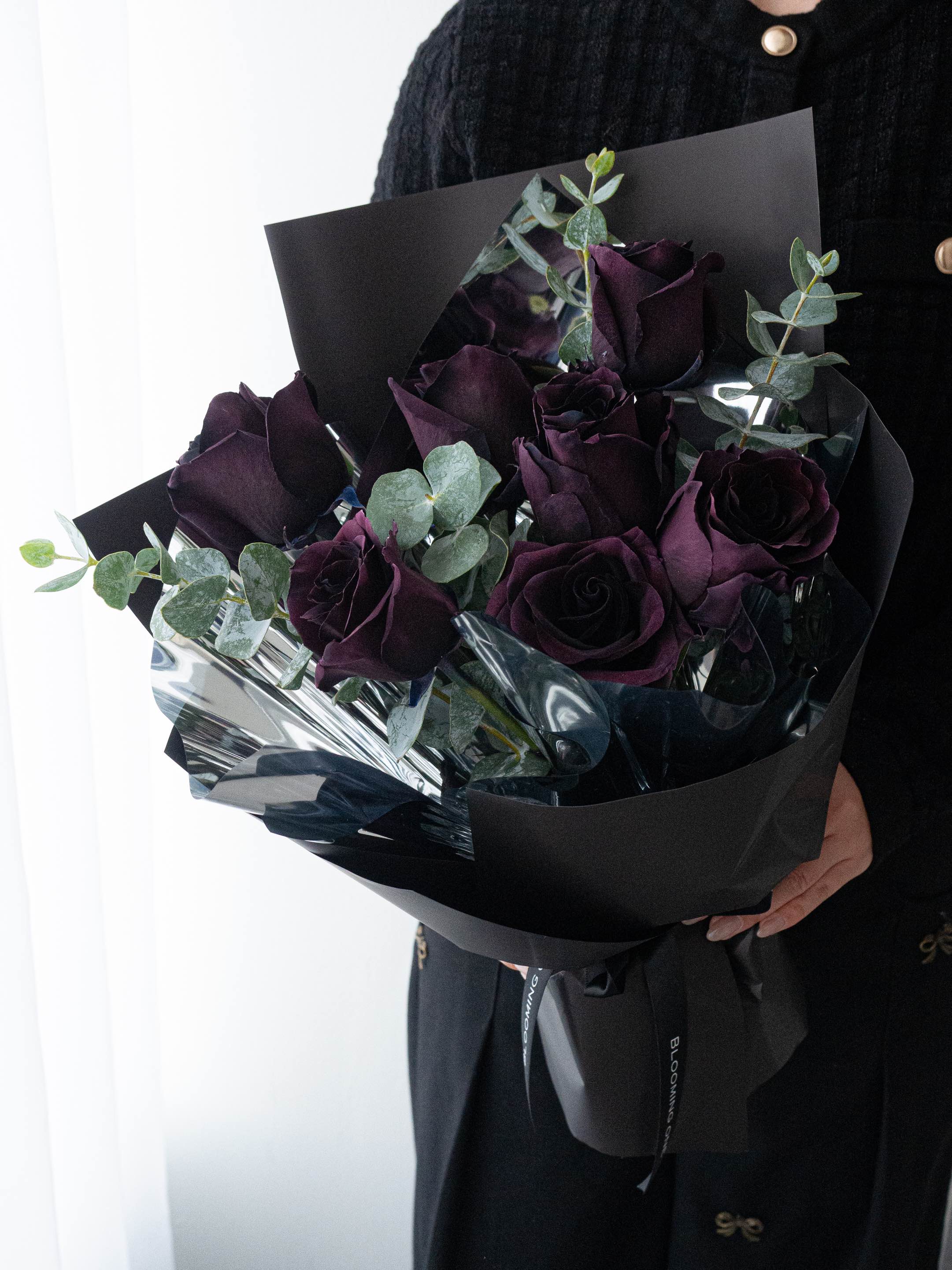 A mysterious blend of deep plum roses, smoky foliage, and jet-black wrapping — this bouquet channels elegance with an edge. “Midnight Muse” is bold, romantic, and unforgettable — perfect for statement gifts, anniversaries, or edgy event décor.