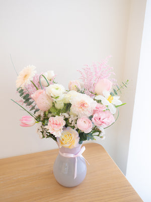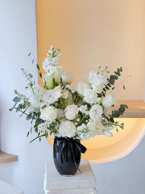 Due to seasonal availability, some flowers pictured may occasionally be substituted with similar blooms of equal or greater value. Our design team will always ensure that the overall style, colour palette, and aesthetic remain as close as possible to the original design.