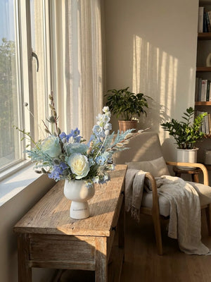 Due to seasonal availability, some flowers pictured may occasionally be substituted with similar blooms of equal or greater value. Our design team will always ensure that the overall style, colour palette, and aesthetic remain as close as possible to the original design.