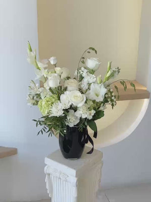 由于季节性供应情况,图片中的部分花材可能会以同等或更高价值的类似花材替代。我们的设计团队将始终确保整体风格、配色和美感与原设计尽可能保持一致。