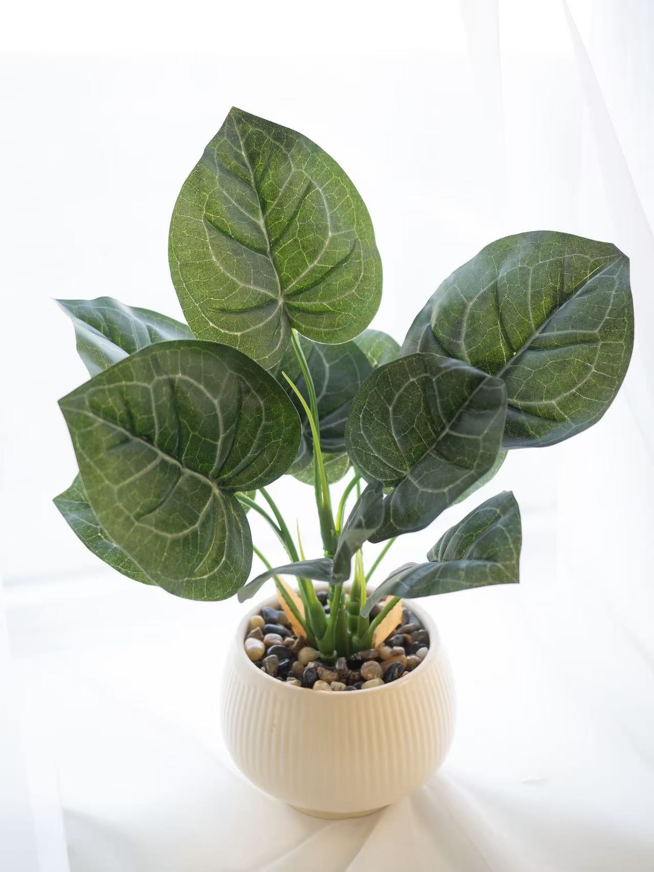 这款6×10英寸(约15×25厘米)的深绿色仿真绿植,以清晰叶脉与自然弧度为设计亮点,质感满满。搭配竖纹陶瓷花盆和石子填充,无论是婚礼布置、拍摄背景,还是家居装饰,都展现高级自然感,视觉清爽耐看。